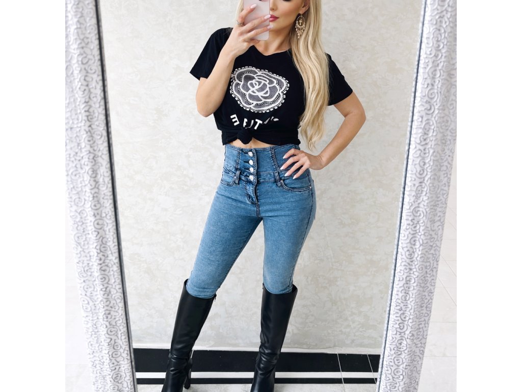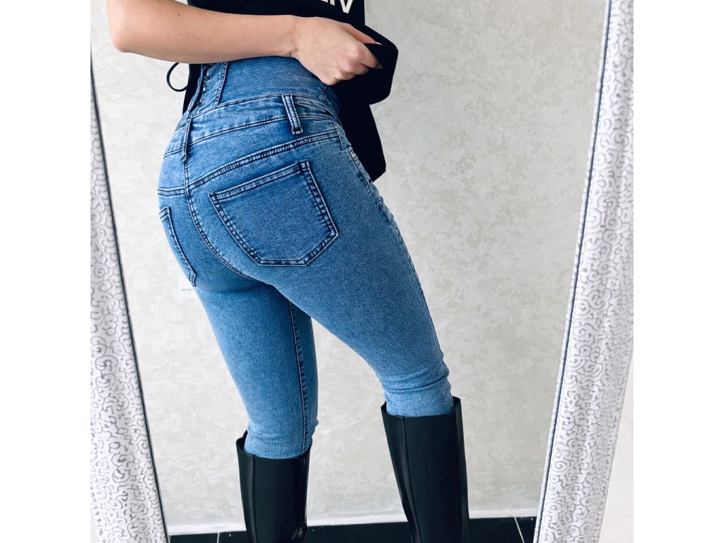 Dámske zoštihľujúce jeansy Vysoký pás. Vzadu šnúrovačka. Made in Italy