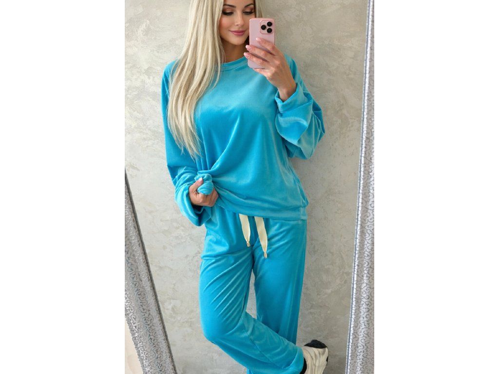 Štýlová dámska súprava v krásnej sviežej farbe je ideálnou voľbou pre milovníčky pohodlia aj trendy vzhľadu. Set pozostáva z voľnej mikiny s dlhým rukávom a pohodlných nohavíc s elastickým pásom.