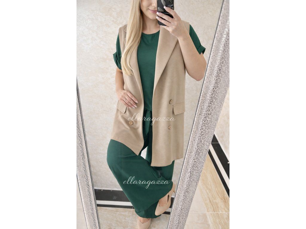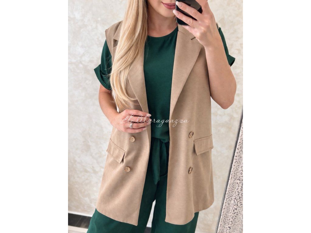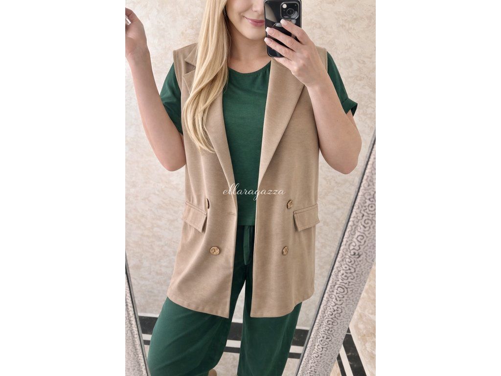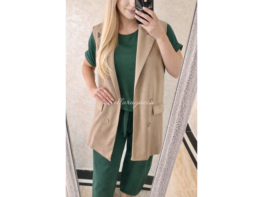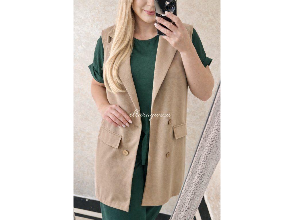 Neutrálna béžová farba pôsobí sofistikovane a ľahko sa kombinuje s akýmkoľvek outfitom – od casual štýlu až po elegantné kombinácie. Dekoratívne gombíky dodávajú veste moderný, upravený look.