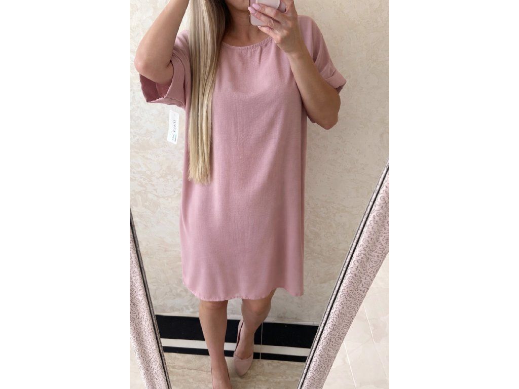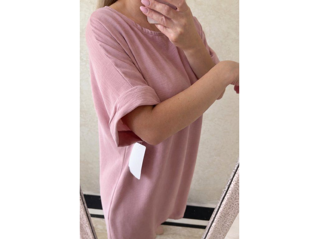 Elegantná a zároveň maximálne pohodlná tunika v jemnom púdrovo ružovom odtieni. Ma voľný, mierne áčkový strih, ktorý krásne splýva na postave a lichotí každej siluete.