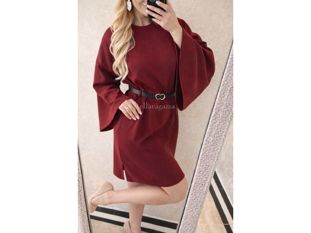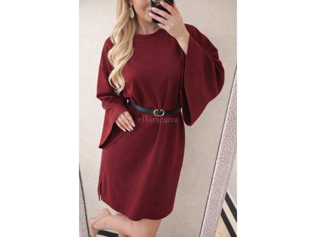 Elegantné šaty s rozšíreným rukávom – Burgundy