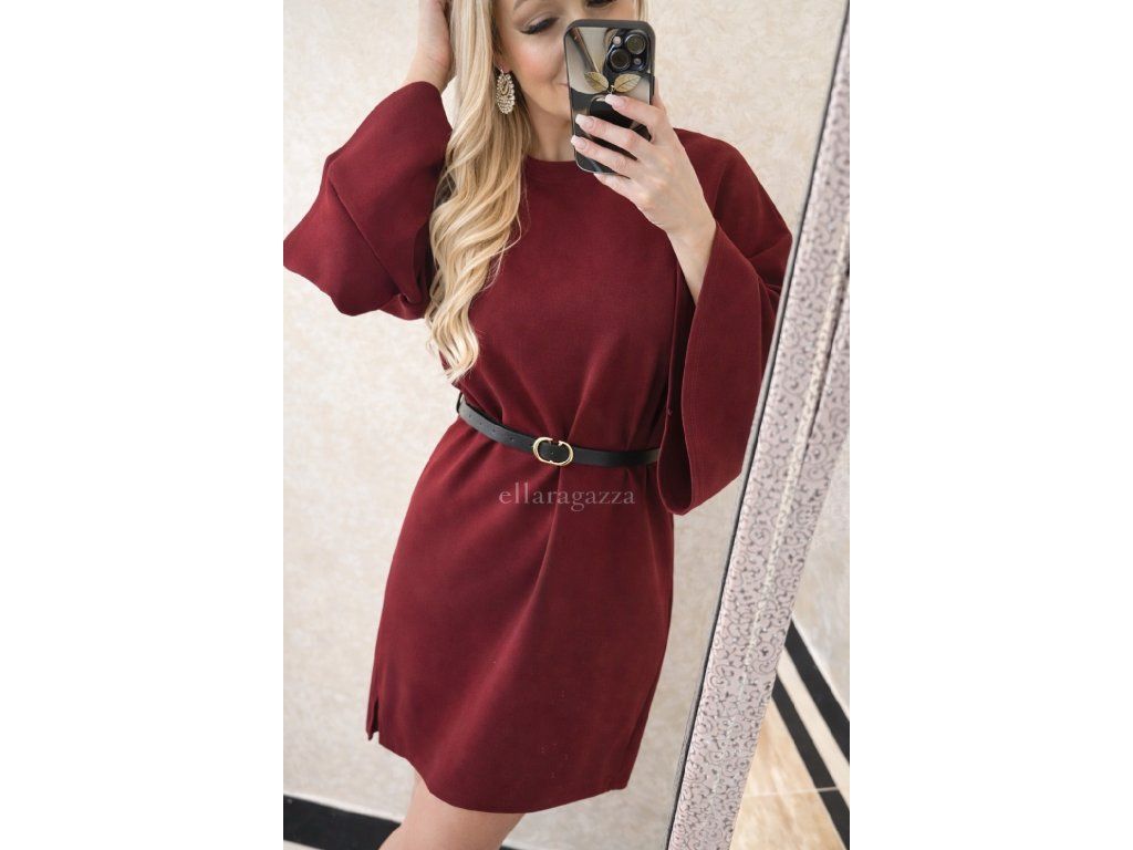Nadčasová elegancia, ktorá si získa pozornosť na prvý pohľad. Tieto šaty v luxusnom bordovom odtieni sú stelesnením ženskosti a pohodlia zároveň. Voľnejší strih krásne splýva s postavou, zatiaľ čo opasok zvýrazní pás a dodá siluete sofistikovaný tvar.