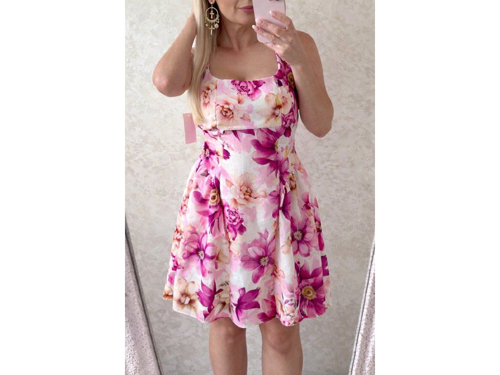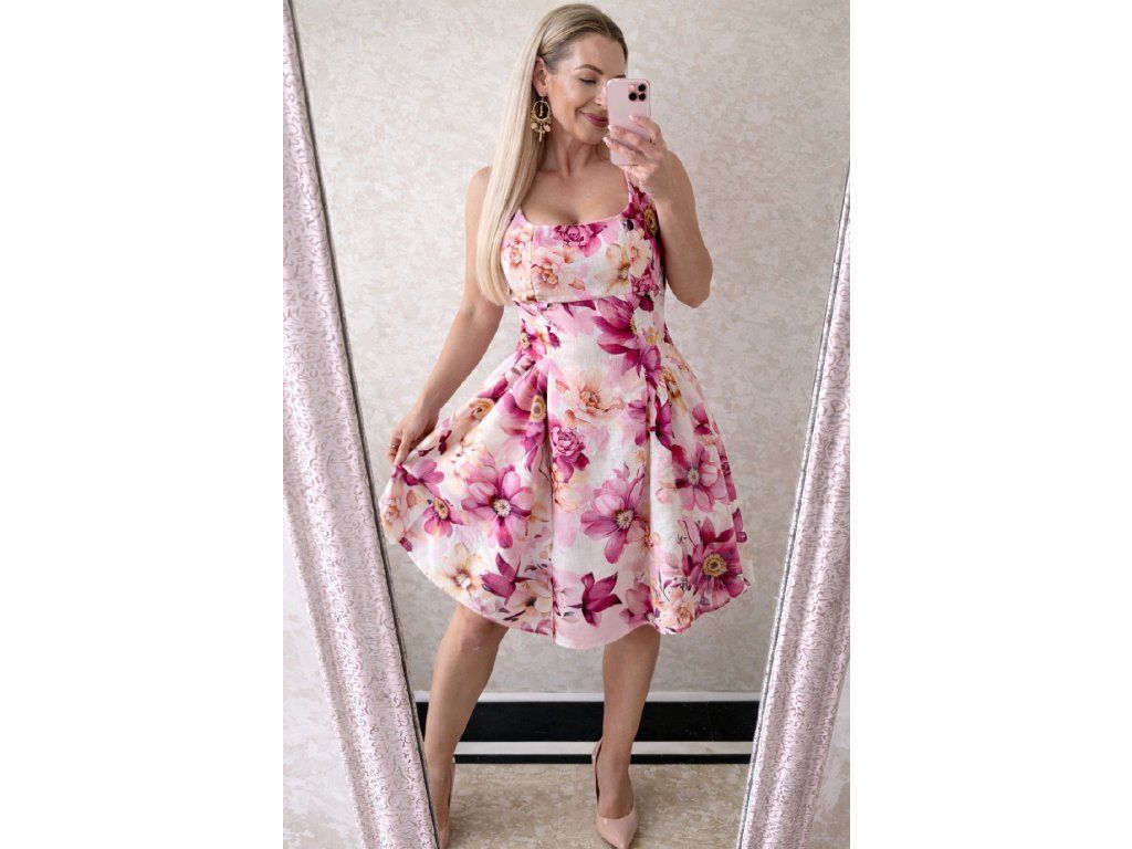 Tieto očarujúce šaty si zamiluješ na prvý pohľad. Jemný kvetinový vzor v ružových a púdrových odtieňoch pôsobí žensky, sviežo a veľmi elegantne.