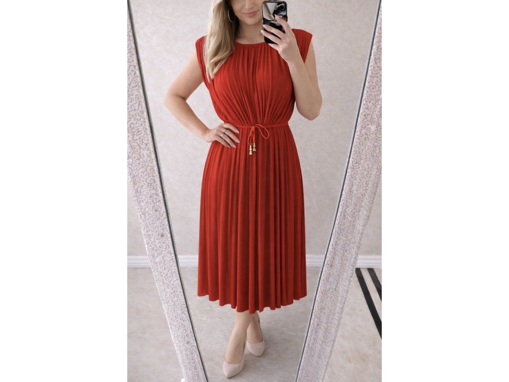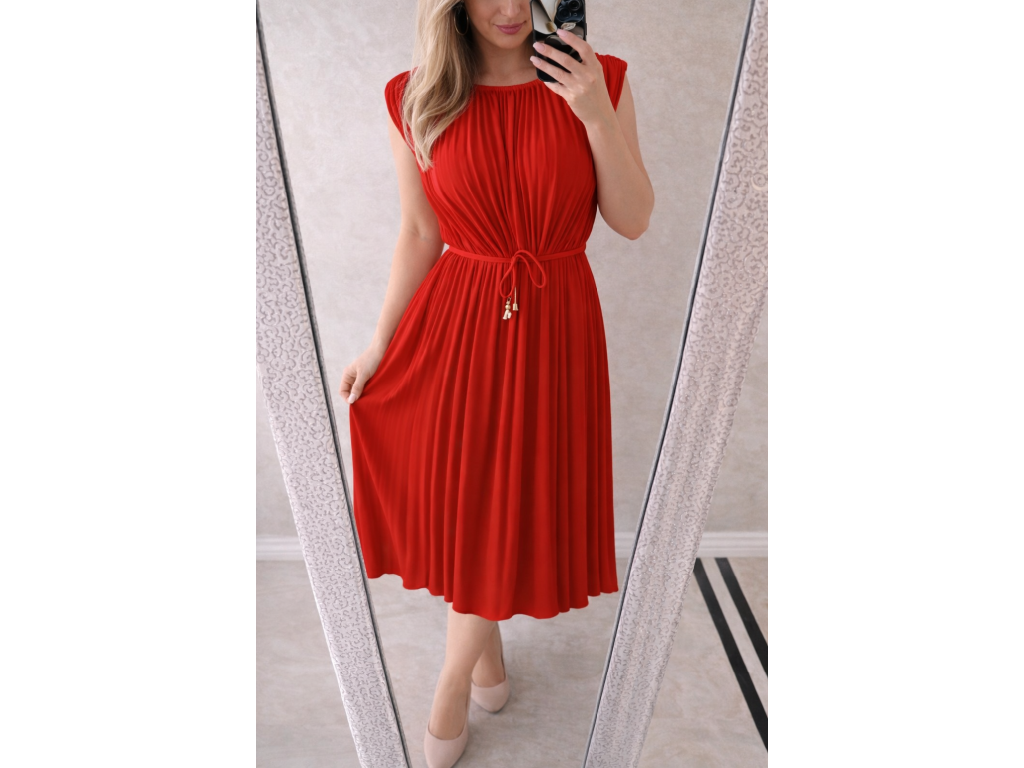 Elegantné plisované šaty – červené