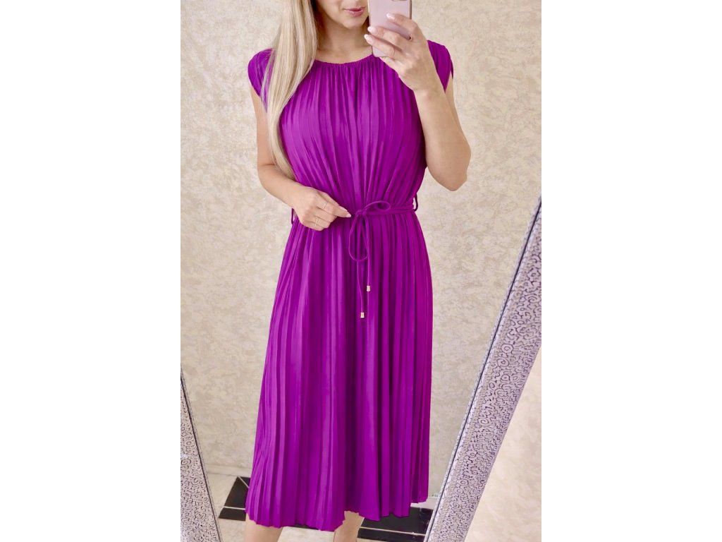 ✨ Elegantné plisované šaty v žiarivej fialovej farbe ✨