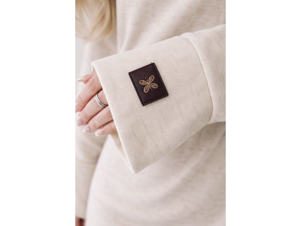 Jednoduchý strih dopĺňajú zaujímavé rozšírené rukávy, ktoré dodávajú šatám moderný a originálny vzhľad. Decentný detail na rukáve podčiarkuje celkový elegantný charakter modelu.
