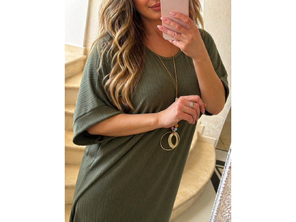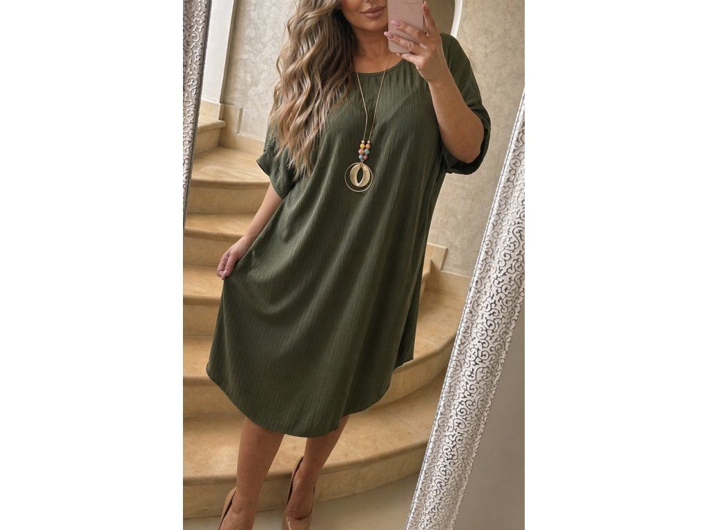 Dámske voľné šaty s náhrdelníkom – olivová elegancia