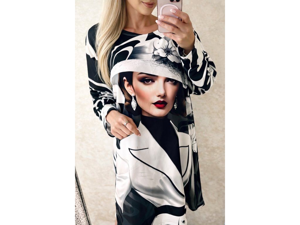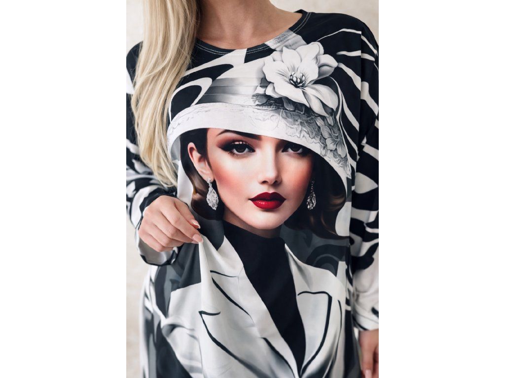 Unikátne šaty s originálnym fashion printom, ktorý okamžite pritiahne pozornosť. Voľný oversize strih zabezpečuje maximálne pohodlie a zároveň pôsobí moderne a trendovo.