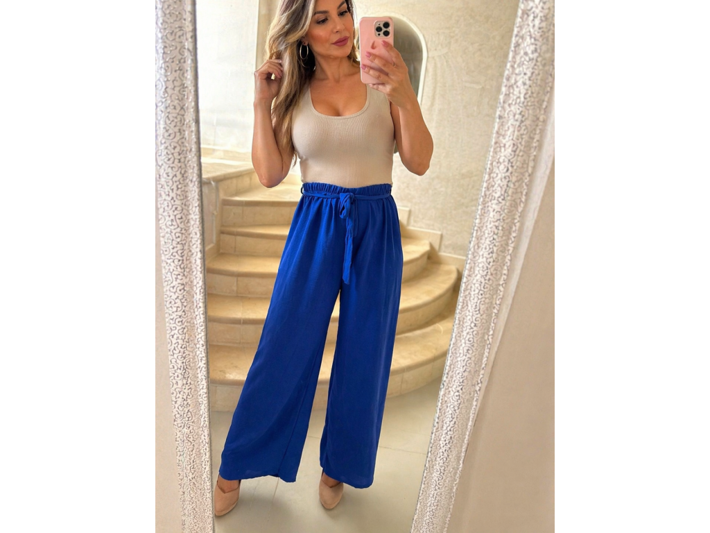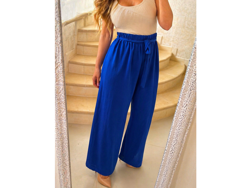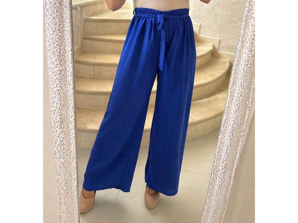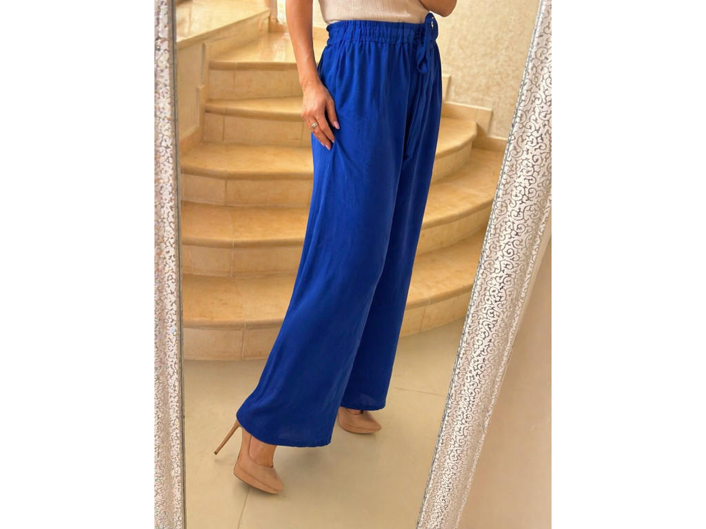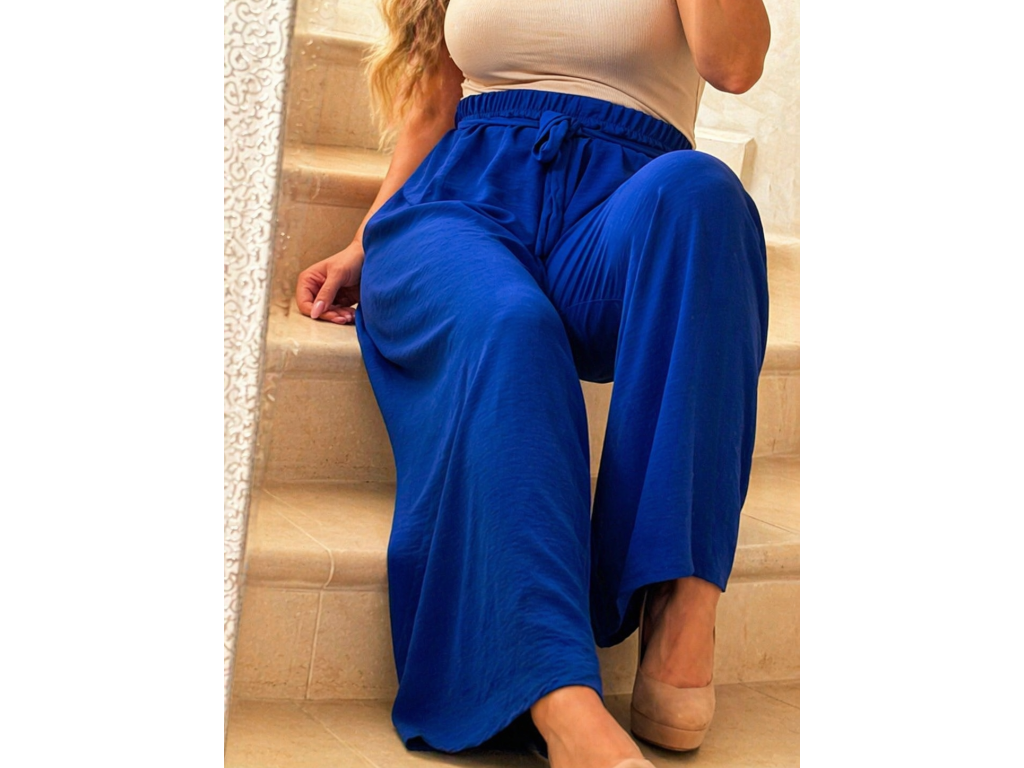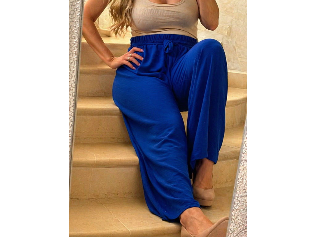 Elegantné a zároveň maximálne pohodlné nohavice v nádhernej kráľovskej modrej farbe sú ideálnym kúskom pre každodenné nosenie aj štýlové kombinácie. Vzdušný, ľahký materiál krásne splýva a zabezpečuje komfort počas celého dňa.