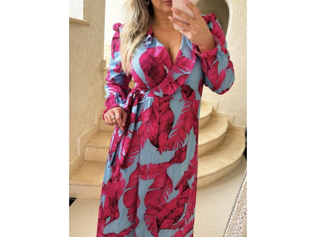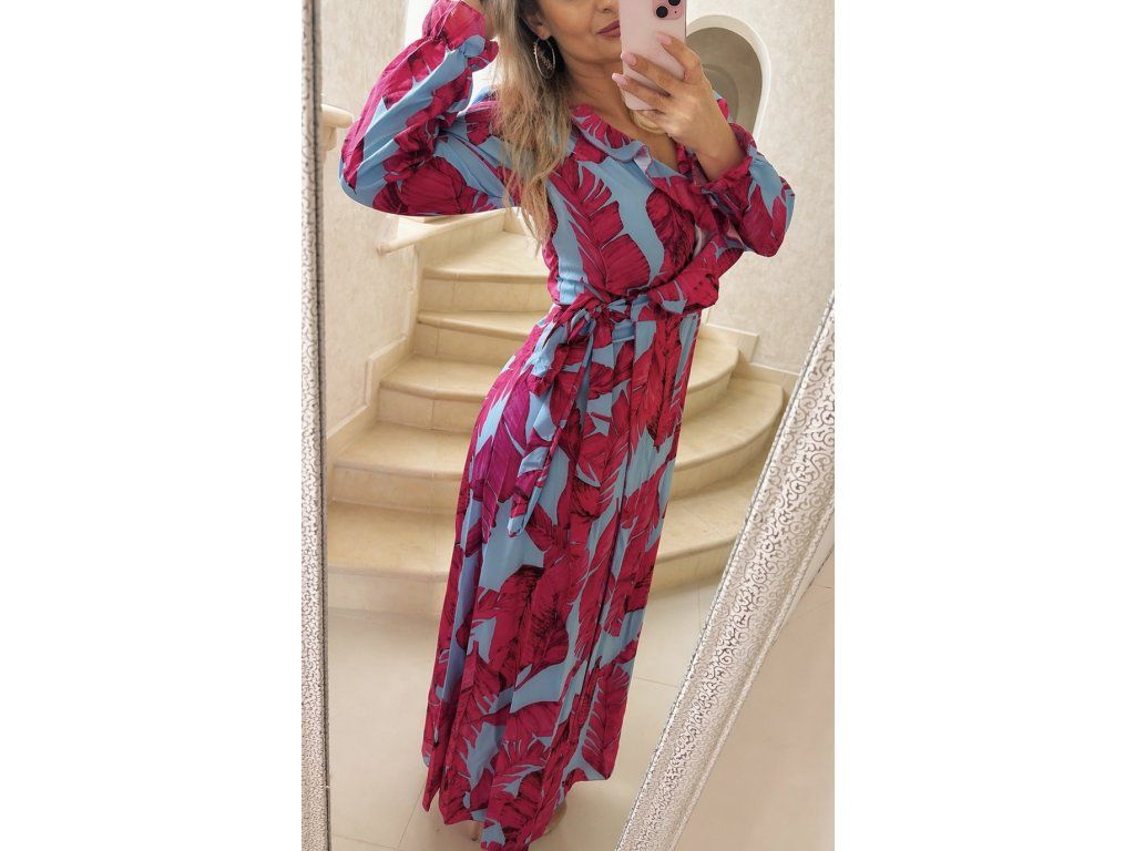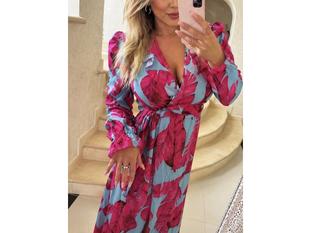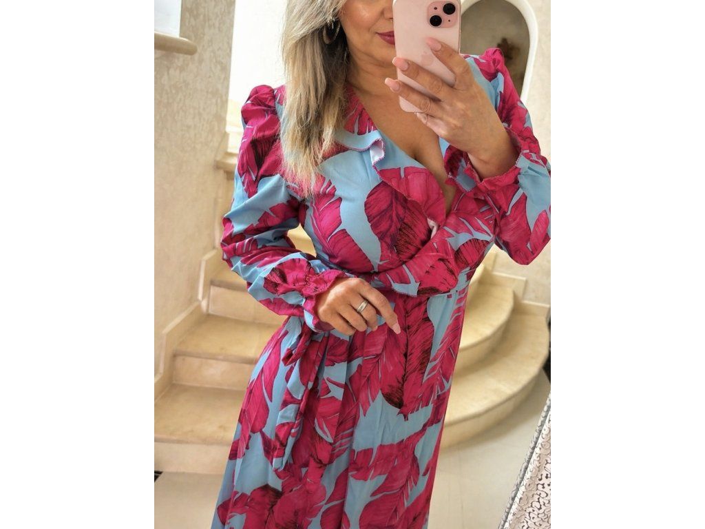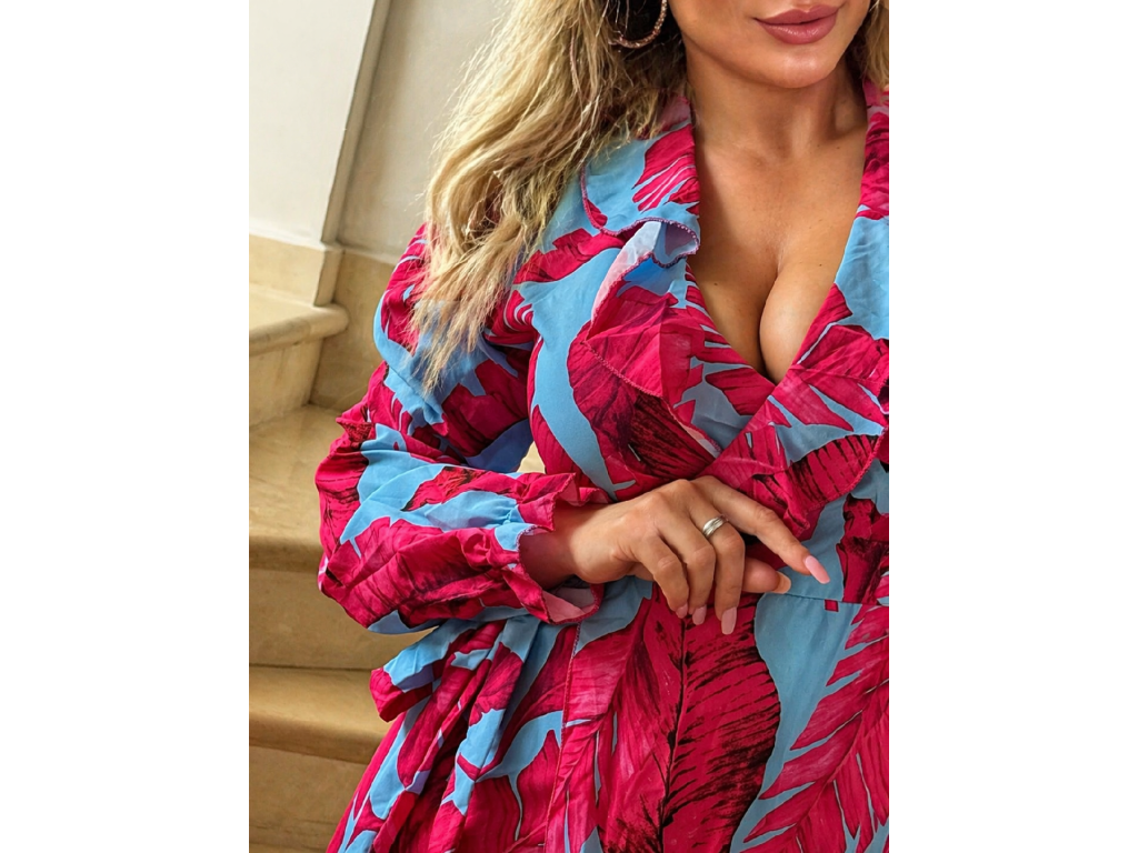 Štýlový a ženský overal v jemnom modro -ružovom odtieni, ktorý krásne zvýrazní siluetu a dodá každému outfitu nádych elegancie. Prekladaný výstrih vytvára lichotivý dekolt, zatiaľ čo zvýšený pás opticky predlžuje postavu. Výnimočným detailom sú voľné, splývavé rukávy, ktoré dodávajú modelu luxusný a moderný vzhľad.