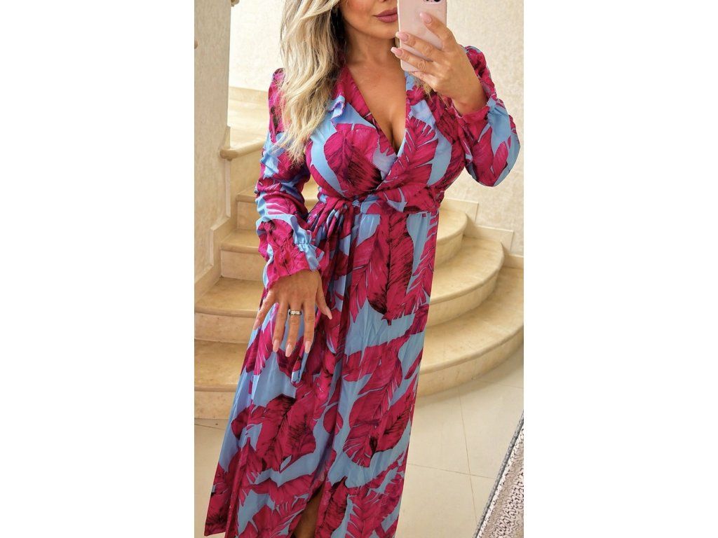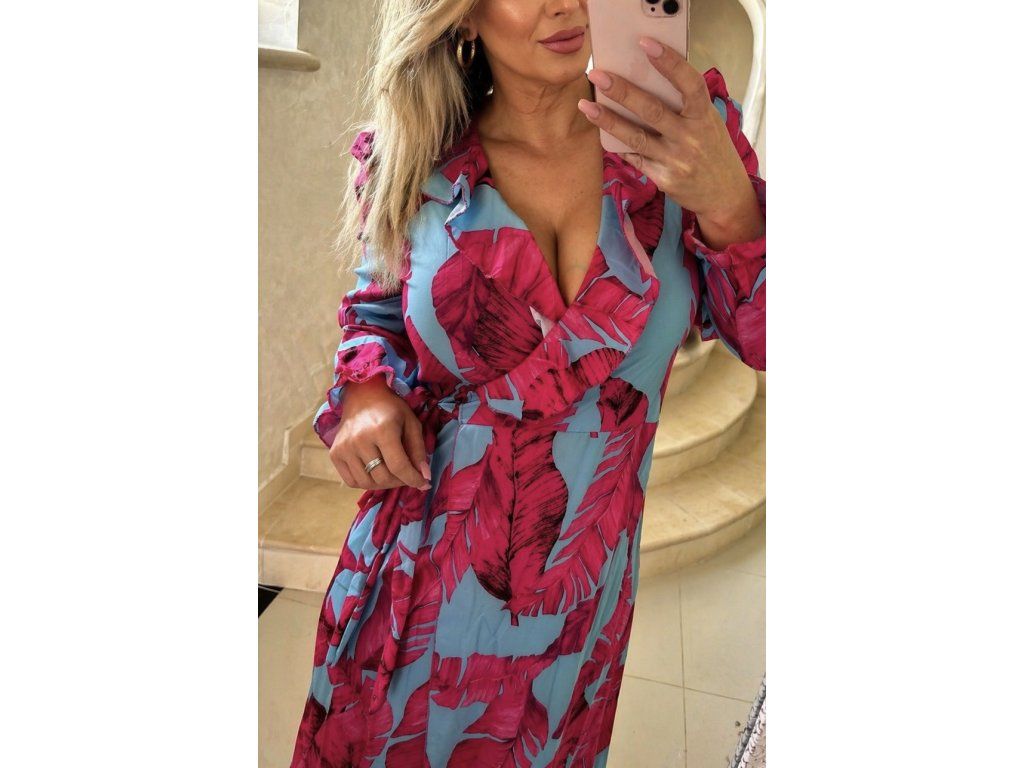 Elegantný dámsky overal s prekladaným výstrihom – fuchsia