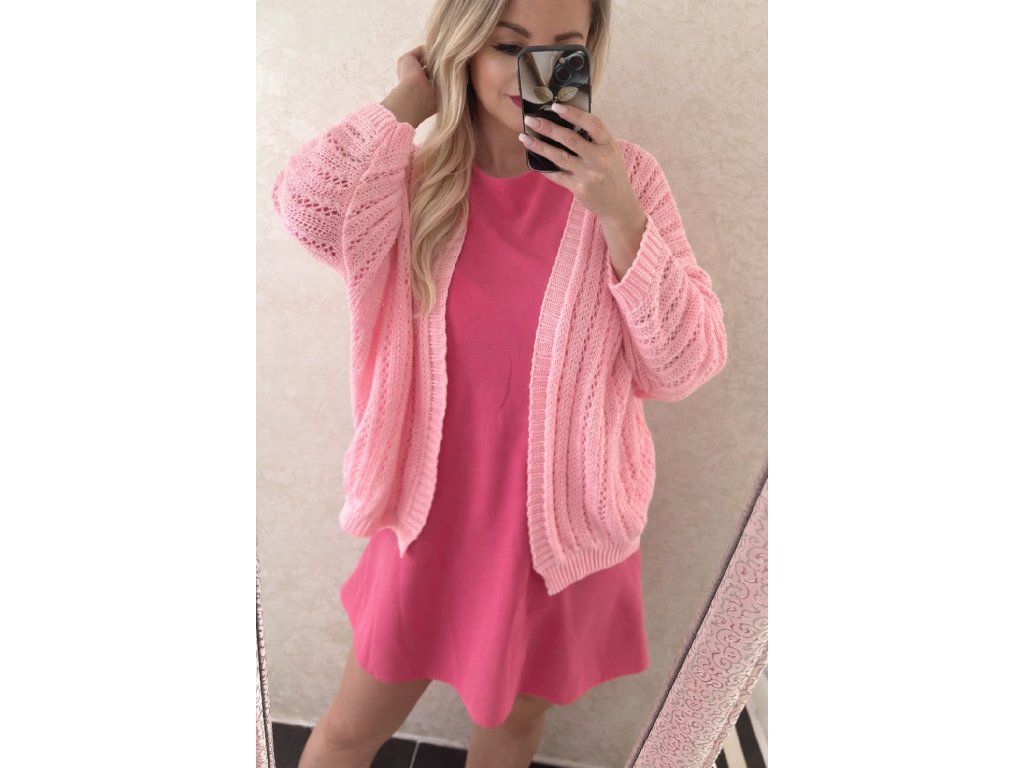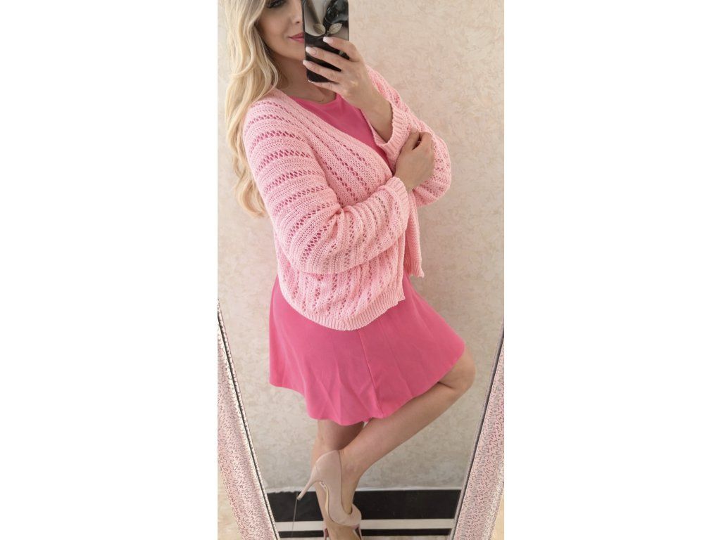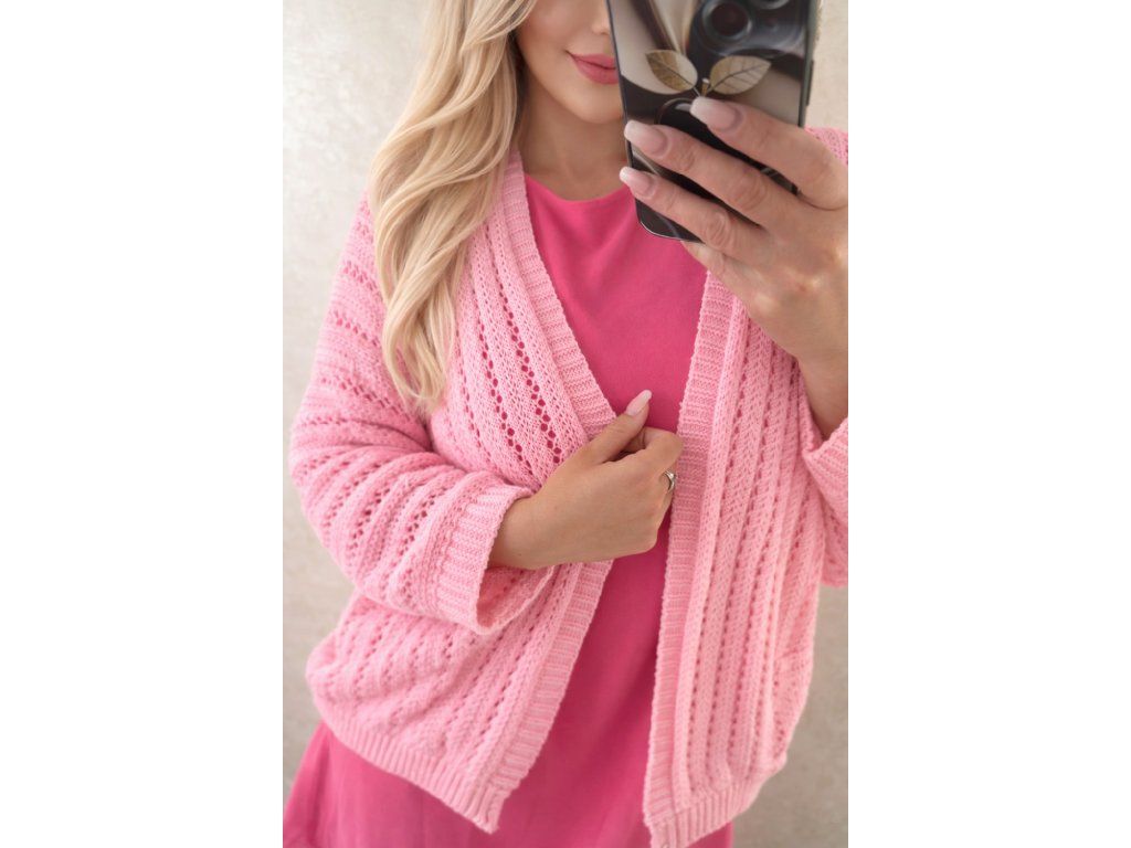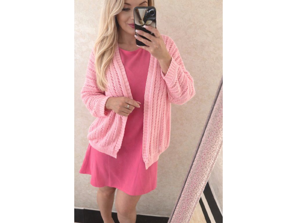 Dámsky háčkovaný svetrík/cardigan pinky passion
