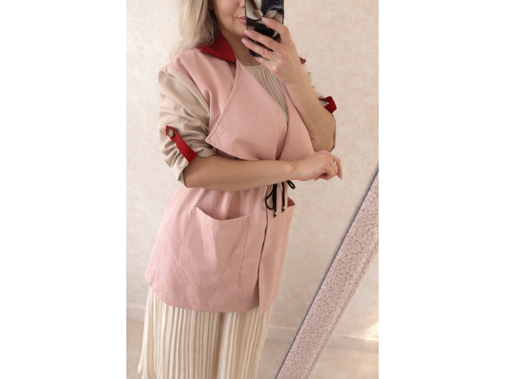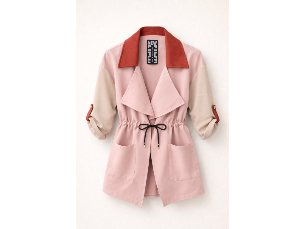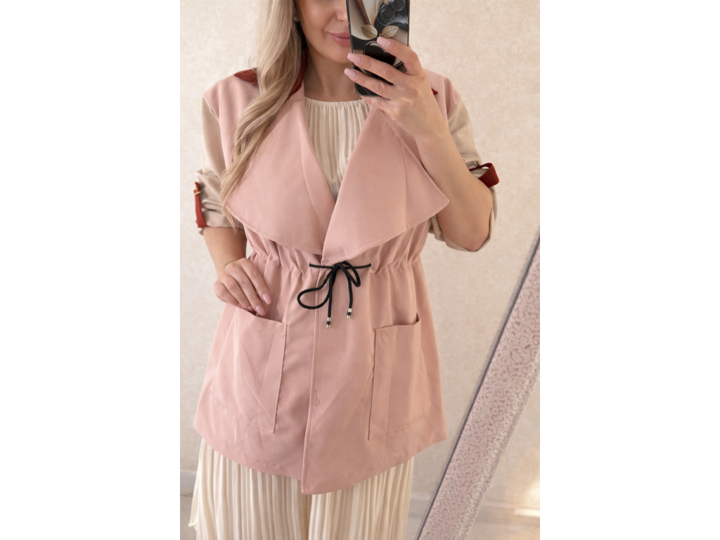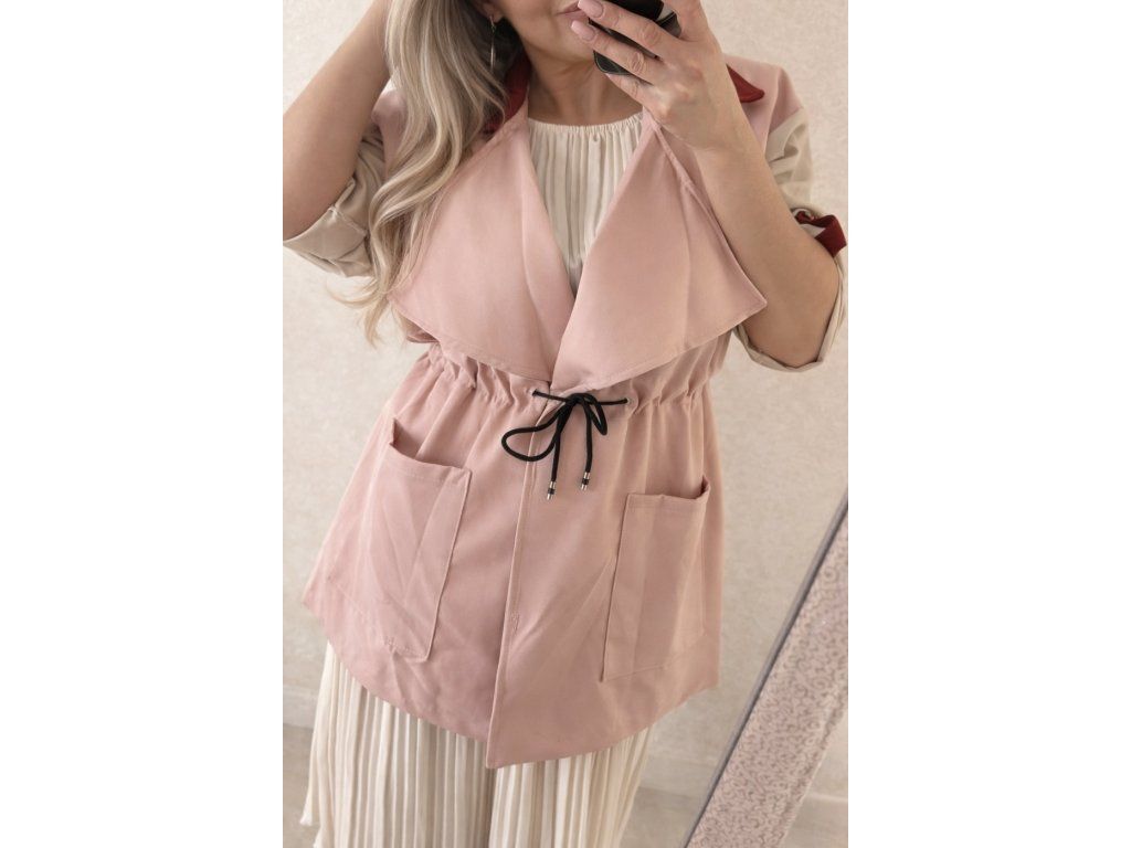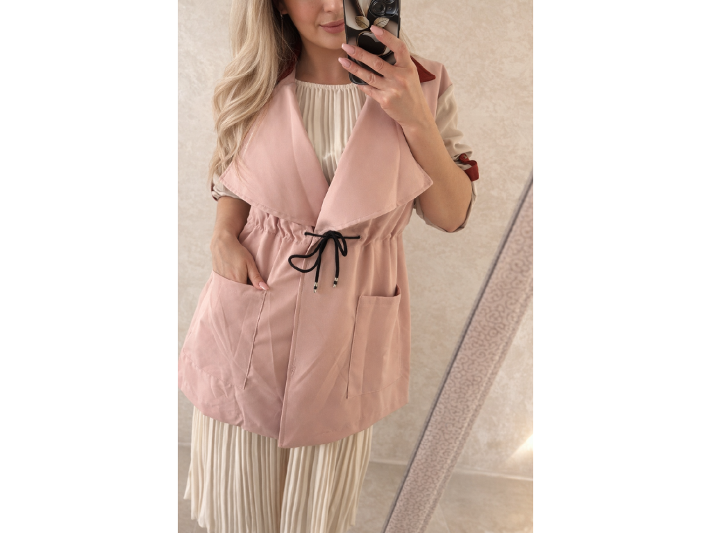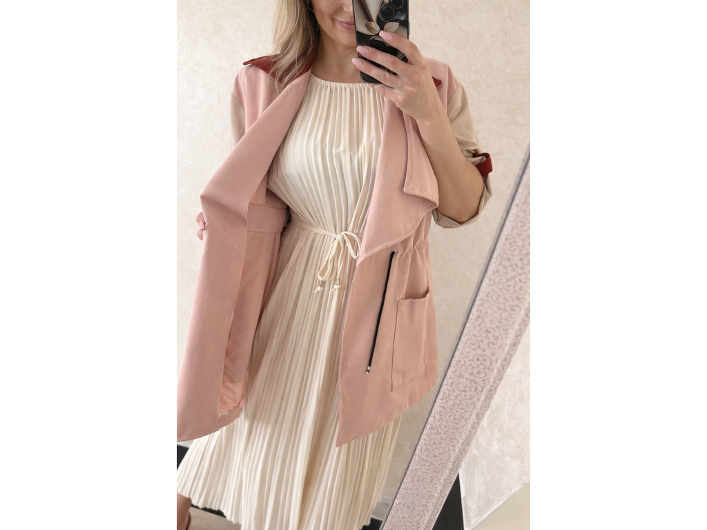 Nadčasový dámsky jacket v jemnom ružovom odtieni, ktorý pôsobí veľmi žensky a elegantne. Vďaka ľahkému materiálu a sťahovaniu v páse krásne formuje postavu a zároveň zostáva pohodlný na nosenie.