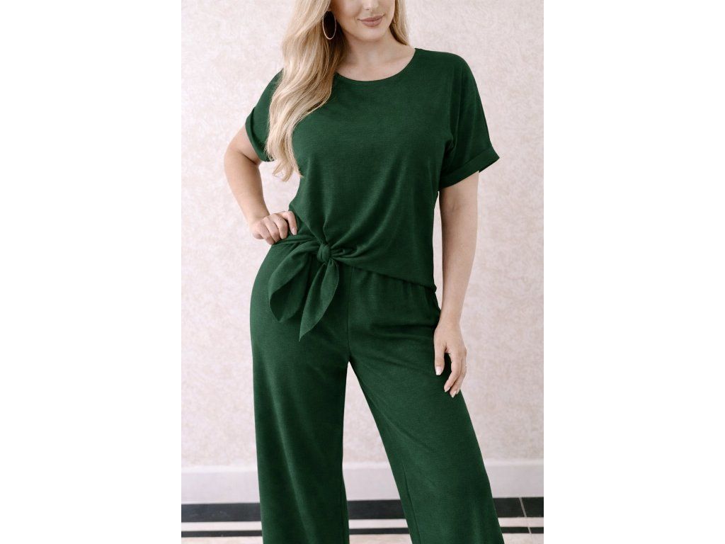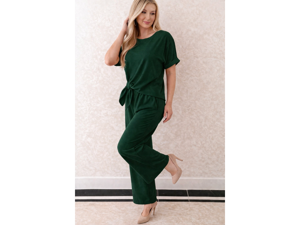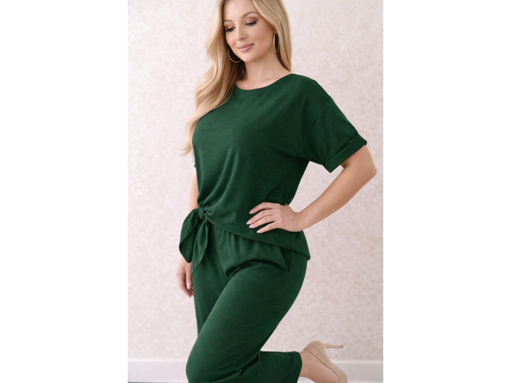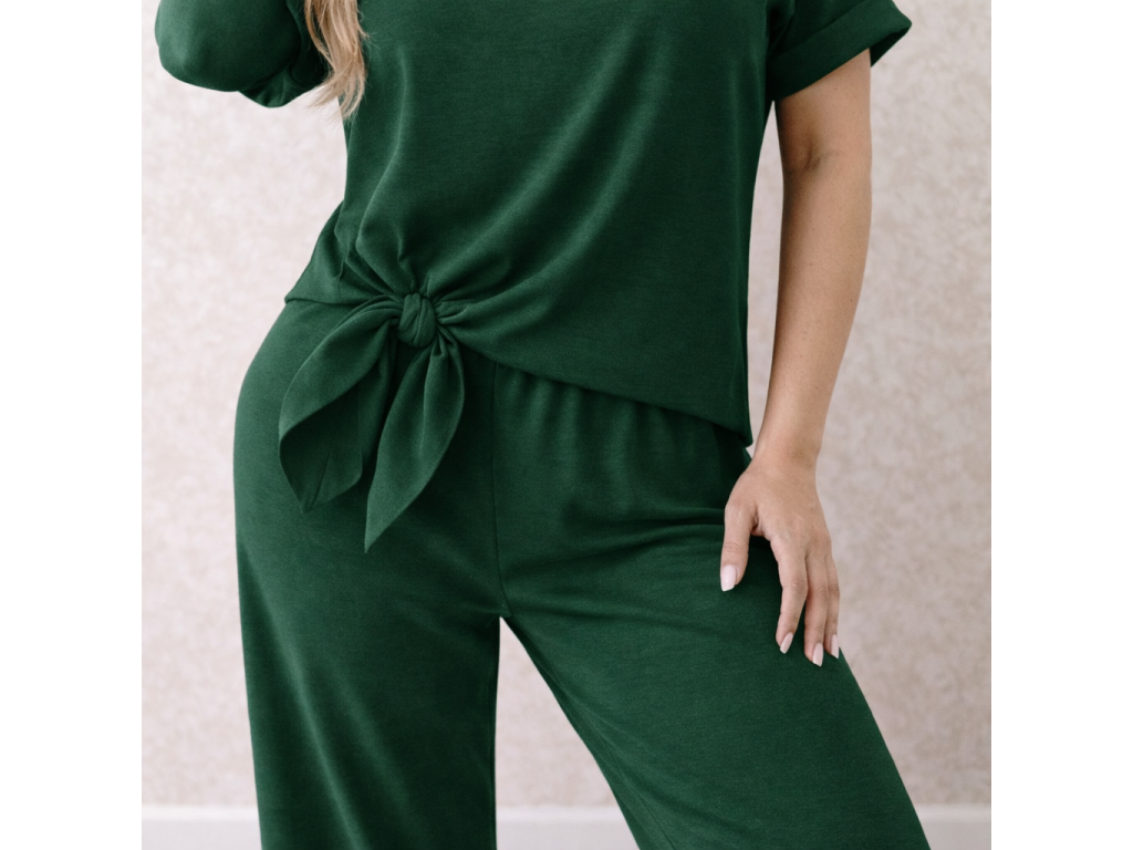 Elegantný a zároveň maximálne pohodlný dámsky komplet v nadčasovej tmavozelenej farbe je ideálnou voľbou pre každodenné nosenie aj štýlové outfity. Jemný, splývavý materiál krásne kopíruje postavu a pôsobí veľmi žensky a sofistikovane.