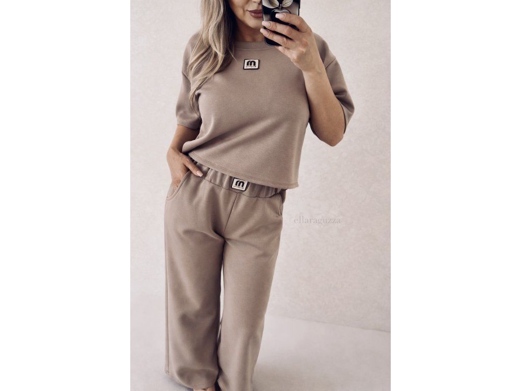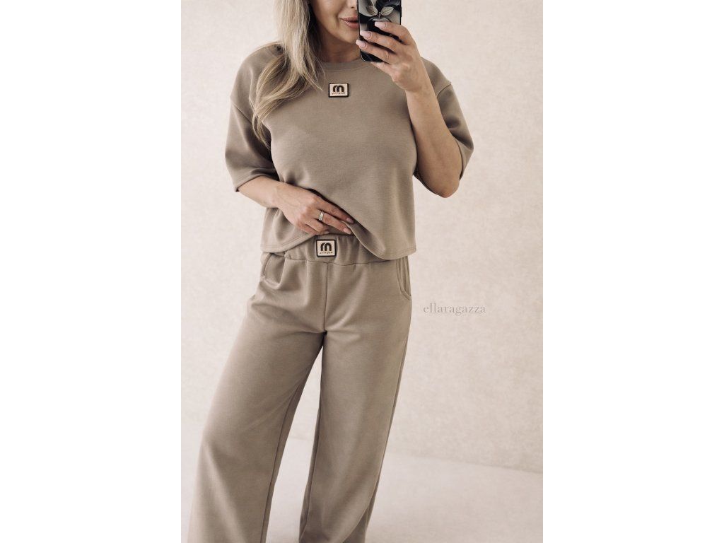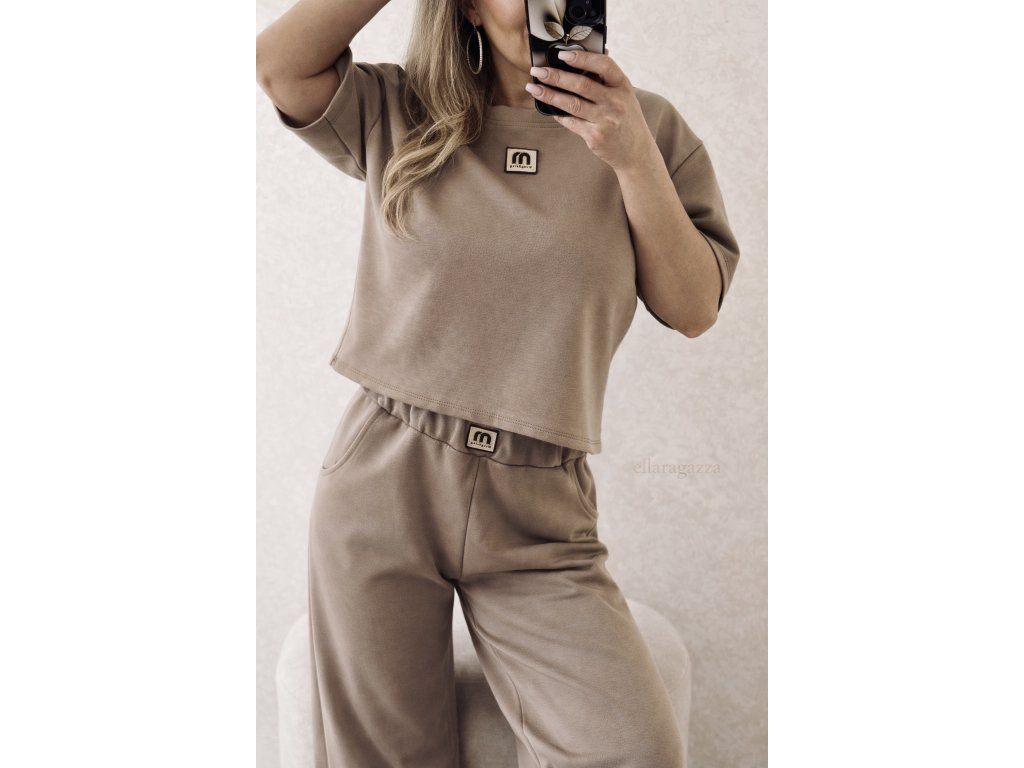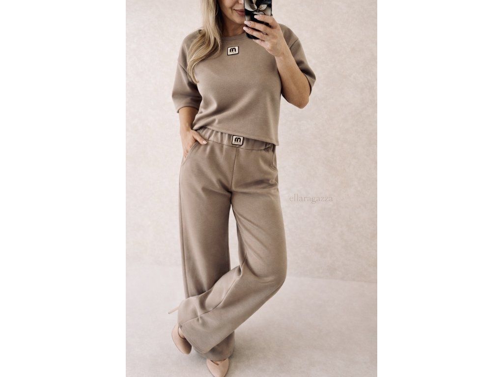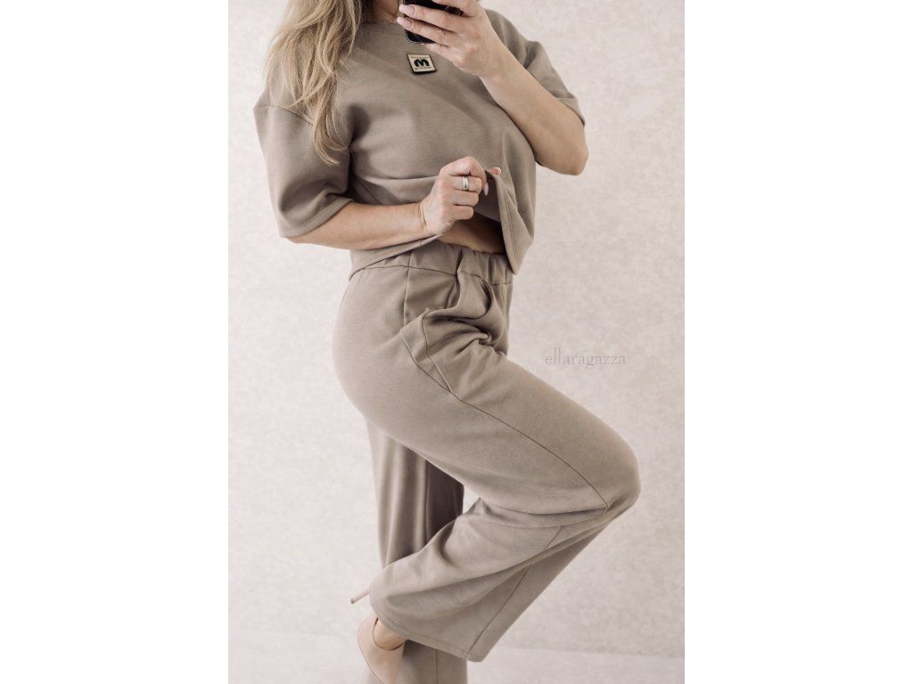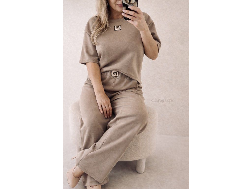 Elegantný a zároveň maximálne pohodlný komplet v nadčasovej mocha latte farbe, ktorý si zamiluješ na každý deň. Set pozostáva z voľnejšieho topu a širokých nohavíc, ktoré krásne splývajú a vytvárajú štýlový, ležérny look.