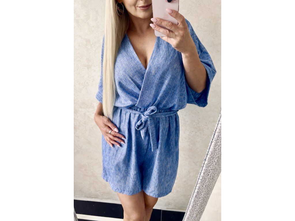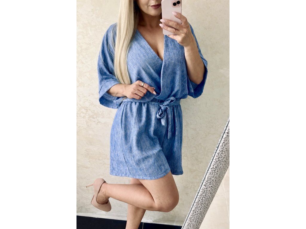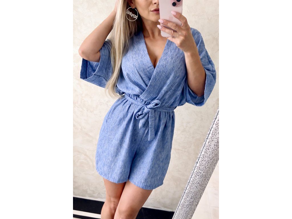 🫶🫶🫶 Elegantný dámsky overal v jemnom modrom odtieni, ktorý pôsobí sviežo, žensky a veľmi štýlovo. Vzdušný, ľahký materiál je ideálny na teplejšie dni a zaručuje maximálne pohodlie pri nosení.