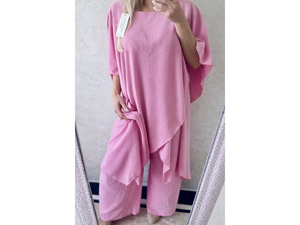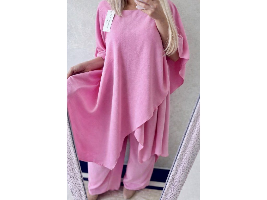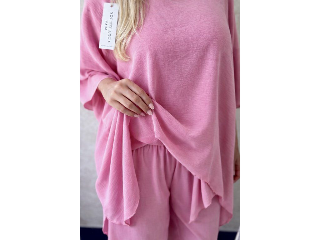 Štýlový a maximálne pohodlný komplet, ktorý si zamiluješ na prvé oblečenie. Jemný baby pink odtieň pôsobí žensky, sviežo a luxusne, zatiaľ čo voľný strih zabezpečuje dokonalý komfort počas celého dňa.