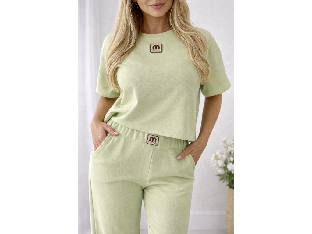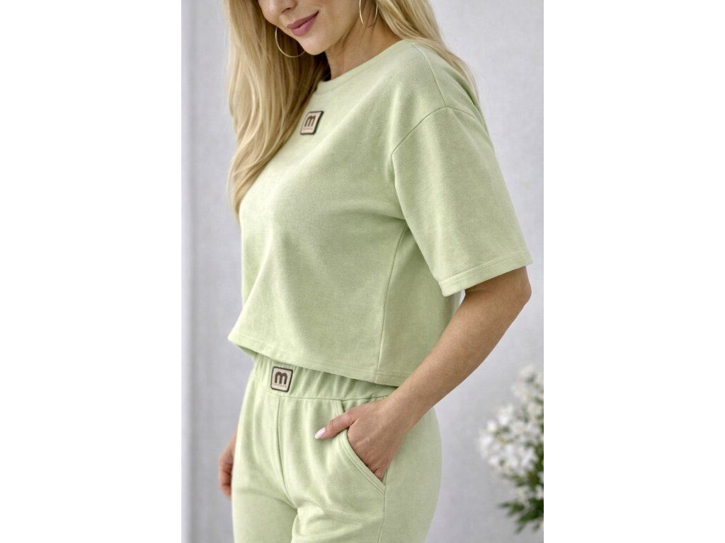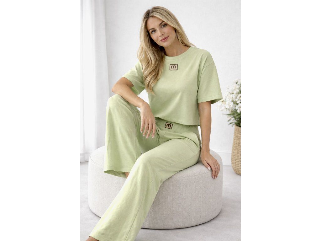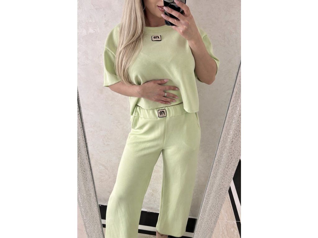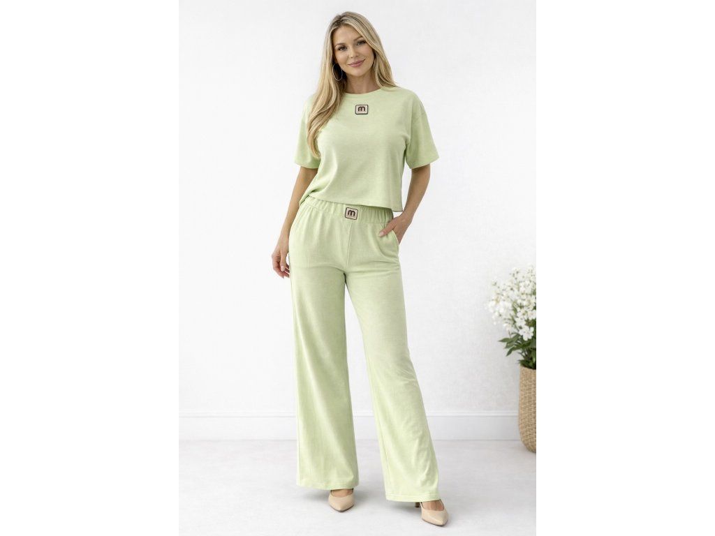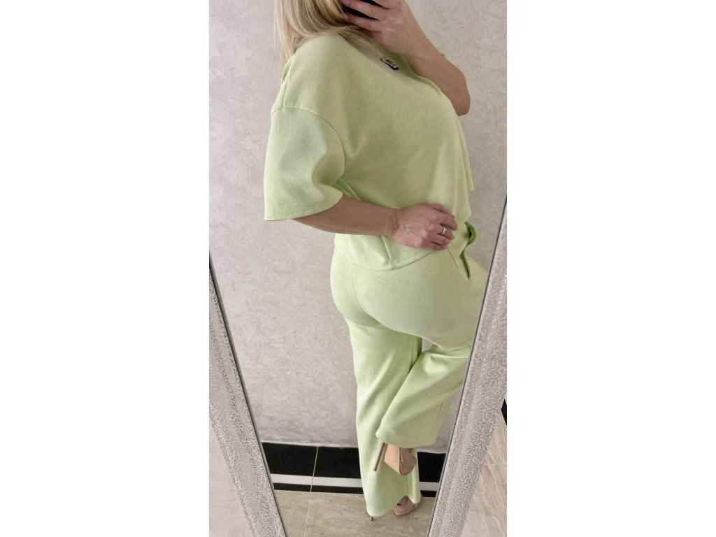 Moderný a pohodlný komplet v jemnom svetlozelenom odtieni, ktorý si zamiluješ na každý deň. Set pozostáva z voľnejšieho crop topu a širokých nohavíc s elastickým pásom, ktoré spolu vytvárajú štýlový a zároveň maximálne komfortný outfit.