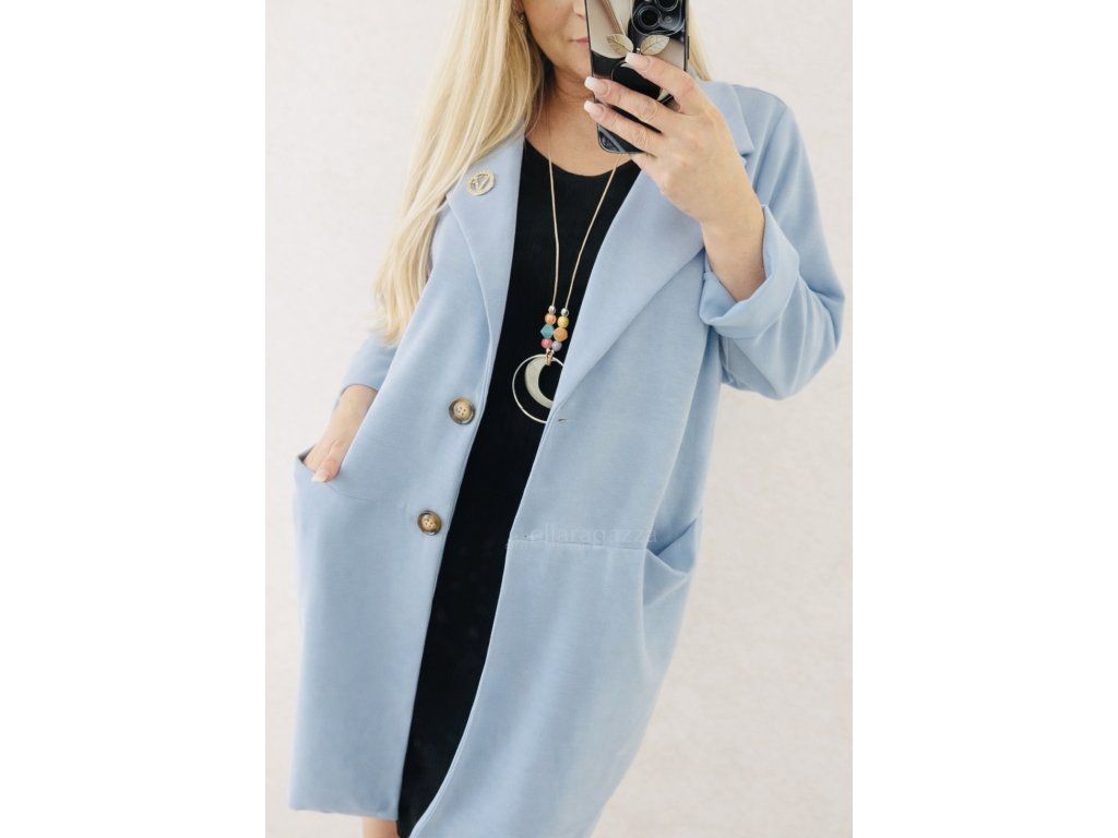 Objav nadčasovú eleganciu v jemnom odtieni baby blue. Tento štýlový oversize kabát je dokonalým kúskom pre ženy, ktoré milujú pohodlie, ale nechcú sa vzdať sofistikovaného vzhľadu.