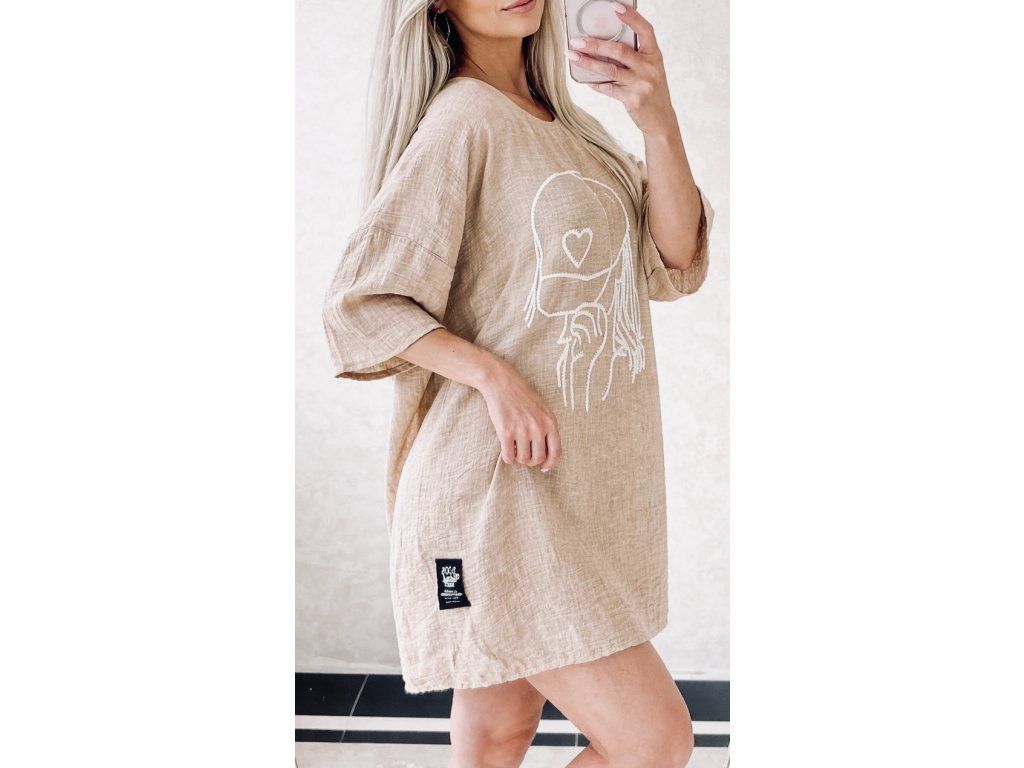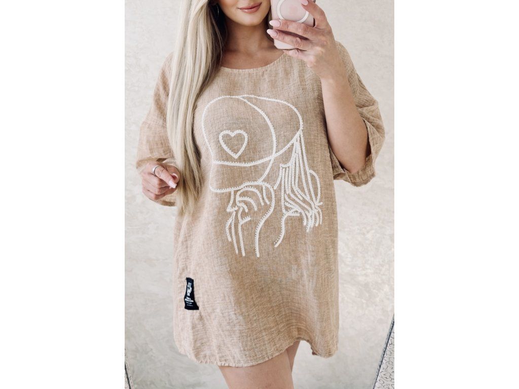 Elegantná a zároveň maximálne pohodlná tunika v prírodnom béžovom (taupe) odtieni je ideálnou voľbou na každodenné nosenie aj letné dni. Vyrobené z ľahkého, priedušného materiálu s jemnou štruktúrou, ktorý pôsobí prirodzene a nadčasovo.